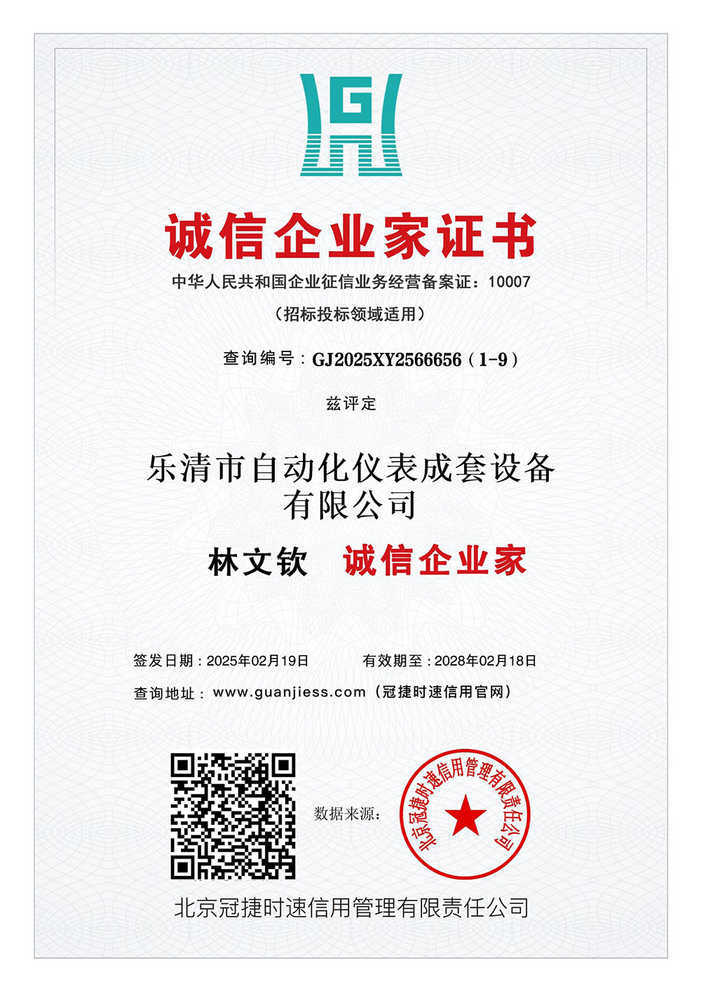 诚信企业家证书
