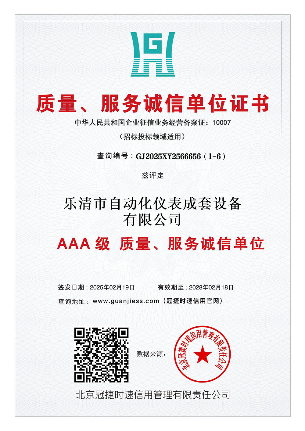 质量、服务诚信单位证书